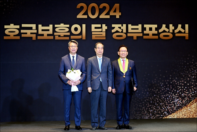 김기병(오른쪽) 롯데관광개발 대표이사 회장이 27일 서울 중구의 한 호텔에서 열린 호국보훈의 달 정부포상식에서 모범 국가보훈대상자로 선정돼 한덕수(가운데) 국무총리로부터 국민훈장 모란장을 받고 있다.[사진제공=롯데관광개발] 롯데관광개발은 김기병 대표이사 회장이 2024년 호국보훈의 달을 맞아 국가보훈부에서 주관한 정부포상식에서 모범 국가보훈대상자로 선정돼 대표로 국민훈장 모란장을 받았다고 27일 밝혔다. 이날 국가보훈부는 모범 보훈대상자(21명) 및 보훈문화 확산에 앞장선 대외 유공인사(6명) 등 총 27명에게 정부포상을 수여했다.