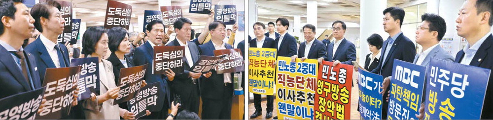 국민의힘 과방위 의원들과 보수 성향 MBC 제3노조는 이날 방통위 앞에서 기자회견을 열고 야당 의원들과 대립했다. 이들은 "헌법재판소에서 기각될 것이 뻔한데도 현재의 MBC 방문진 체제를 무한 연장하겠다는 속셈"이라고 비판했다. 이어 "민주당이 방통위 2인 체제에 대한 문제점을 진심으로 해결할 뜻이 있다면 지금 바로 민주당 몫 방송통신위원 후보를 추천하면 된다"고 주장했다.