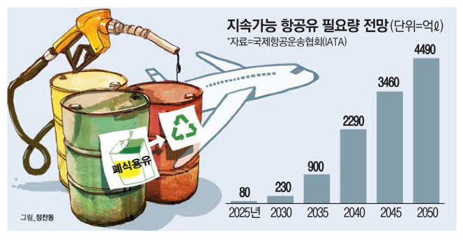 유럽연합(EU)을 비롯한 주요 국가들이 친환경 원료를 활용한 지속가능항공유(SAF) 의무화에 나서면서 정부가 폐식용유나 폐사료로 만든 항공유 생산 지원에 착수했다. 전 세계적인 탈탄소 규제 강화에 따른 항공사들의 부담을 덜고 새로운 산업으로 떠오른 SAF 시장에서 국내 정유업체들의 경쟁력을 높이기 위해서다.