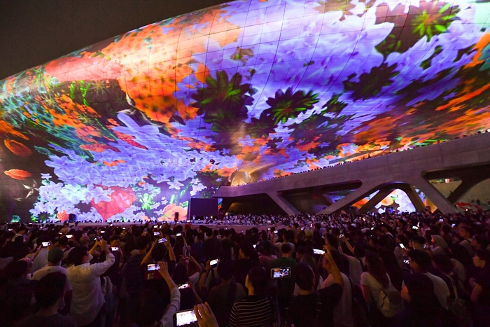 DDP외벽은 김환기 추상 수놓아