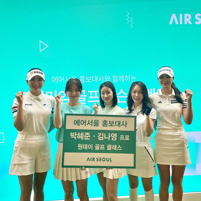 에어서울은 박혜준,김나영 프로와 함께 우수 고객 3명을 초청,‘원데이 골프 클래스’를 진행했다. 두 프로는 2024시즌 한국여자프로골프(KLPGA) 정규투어에서 활동하는 기대주로 에어서울의 홍보대사다.