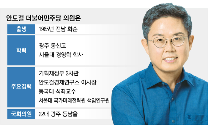 기획재정부 예산실장과 2차관을 지낸 안 의원은 민주당의 대표적 ‘경제통’으로 떠올랐다. 34년 공직생활을 한 그는 코로나19 당시 본예산 3번,추가경정예산 7번을 편성해 총 10번의 예산 편성을 한 전무후무한 기록을 세웠다. 그간 경제관료로서 쌓아온 역량을 내세워 광주 동남을을 지역구로 22대 총선에 출마해 처음 금배지를 달았다.