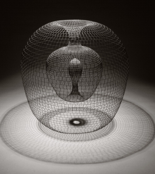 이건 단순한 사과의 재현이 아니다. 가느다란 철사를 토치로 녹여 붙였는데,자세히 보면 외부 곡면의 바깥이 내부 곡면의 안쪽이 된다. 그 역전은 구체의 중심인 세 번째 중심 곡면에서 다시 반복된다. 안과 밖의 구분이 없는 반복적 형상인 것이다.