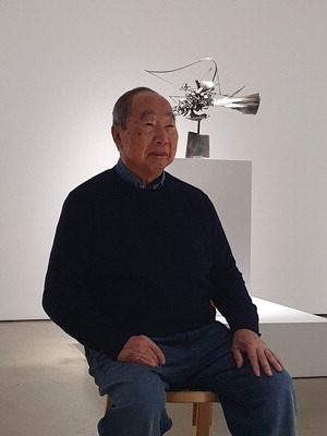 이 작품('Involution')의 출생연도는 1974년. 정확히 50년 전의 작업물을 곁에 두고 지난달 28일 만난 조각가 존 배(87·사진)는 "구(球) 안에 또 다른 구가 중첩된다. 내부와 외부의 관계는 유동적이다. 안팎을 구분할 수 없는 뫼비우스의 조형성"이라고 설명했다.