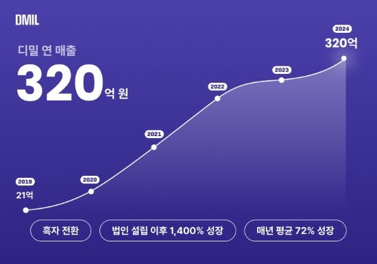 < 자료 출처 : 디밀(디퍼런트밀리언즈) > 뷰티MCN그룹 ‘디밀(디퍼런트밀리언즈,대표 이헌주)’이 지난해 연결기준 연 매출 약 320억원 및 흑자 전환(당기순이익 약 9억원)을 기록했다.2019년 법인 설립 이후,지난해까지 1400% 성장했고,매년 평균 72%의 성장률을 기록하고 있다. 특히 이전 연도부터 분기 연속 흑자 전환을 이뤄냈고,2024년 연간 흑자 전환을 달성하며 매출 증대와 운영 안정성을 동시에 확보하였다.디밀은 2020년 현대홈쇼핑과 아모레퍼시픽그룹으로부터 150억원의 전략적 투자를 유치하였고,크리에이터 IP(Intellectual Properties,지식재산권) 기반의 광고 사업을 중심으로 국내외 500개 이상의 브랜드와 700여 명의 전속 및 비전속 크리에이터 네트워크와 협력하고 있으며,매년 커머스와 브랜드 사업 비중을 확대하고 있다.커머스 카테고리 확대,브랜드 개발 등 크리에이터 IP 수익모델 확장 지속디밀 이헌주 대표는 “국내외 경제 상황은 많이 어렵지만 뷰티 산업과 인플루언서 산업은 앞으로도 지속 성장할 것으로 예상하고 있다”라며 “특히 매출과 이익의 동반 성장 확보를 통해 더 큰 도약을 이뤄낼 것으로 기대한다”라고 말했다.이어 “디밀은 두 산업을 아우르는 선두 주자로서 시장의 성장을 이끌고,인플루언서와 브랜드사 모두에게 더 높은 신뢰를 쌓는 전략적 파트너가 되는 것이 목표”라고 밝혔다.