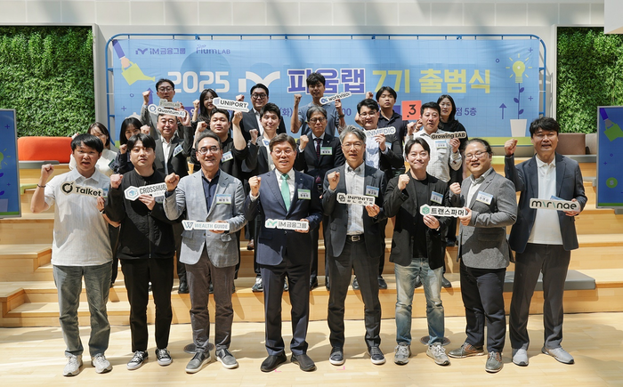 iM금융그룹은 지난달 27일 핀테크 스타트업 육성프로그램인 ‘피움랩(FIUM Lab)’ 7기의 공식 출범식을 개최했다고 4일 밝혔다. 피움랩은 iM금융그룹의 디지털 경쟁력을 강화하고 핀테크 산업을 지원하기 위해 설립됐다. 이날 출범식에서 황병우 회장(왼쪽에서 네번째) 및 피움랩 참여 기업 대표들이 기념사진 촬영을 하고 있다. <iM금융그룹> iM금융그룹은 핀테크 스타트업 육성프로그램인 ‘피움랩(FIUM Lab)’ 7기의 공식 출범식을 지난달 27일 개최했다고 4일 밝혔다. 피움랩은 iM금융그룹의 디지털 경쟁력을 강화하고 핀테크 산업을 지원하기 위해 설립됐다. 황병우 회장(왼쪽에서 네번째) 및 피움랩 참여 기업 대표들이 기념사진 촬영을 하고 있다. <iM금융그룹>
