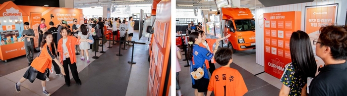 ‘아워홈런’ 이벤트 전경. [사진 출처 = 아워홈] 한화그룹 계열사로 편입된 아워홈이 프로야구단 한화이글스와 2025 시즌 연간 스폰서십 협약을 체결하고 이를 기념해 대규모 이벤트를 열었다고 3일 밝혔다.