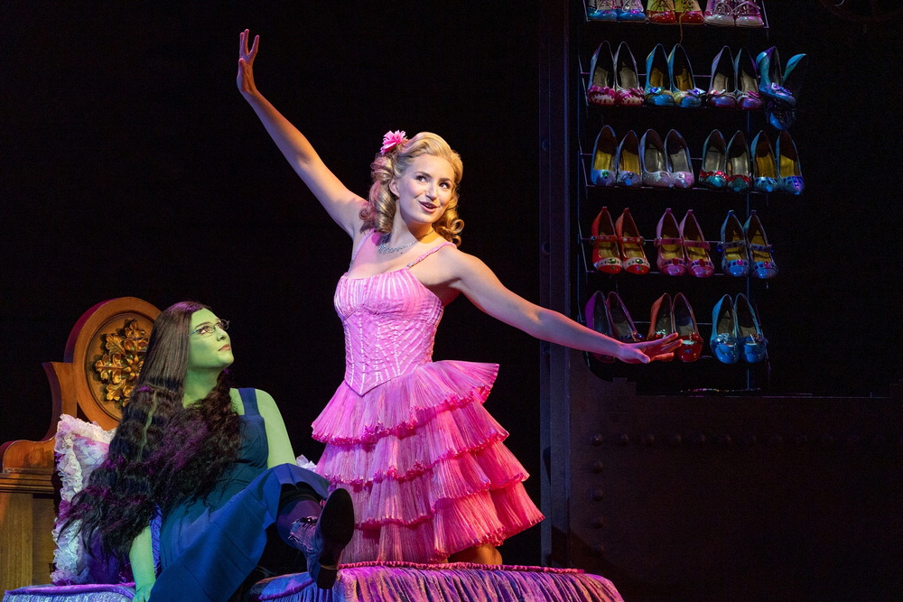 글린다 역을 맡은 배우 코트니 몬스마의 깜찍한 연기력,엘파바 역의 셰리든 애덤스·조이 코핀저의 가창력이 돋보인다. 글린다는 노래 '포퓰러(Popular·인기 있는)'를 엘파바에게 불러주며 인기 많은 비법을 알려준다. 글린다는 "나의 전공은 포퓰러. 칙칙하고 어둡던 너의 과거를 다 잊게 해줄게. 중요한 건 예쁜 척,잘나가는 척 겉모습이 중요해"라며 코믹 연기를 선보인다. 또 엘파바의 가창력이 폭발하는 노래 '중력을 벗어나'는 이 작품의 클라이맥스다.