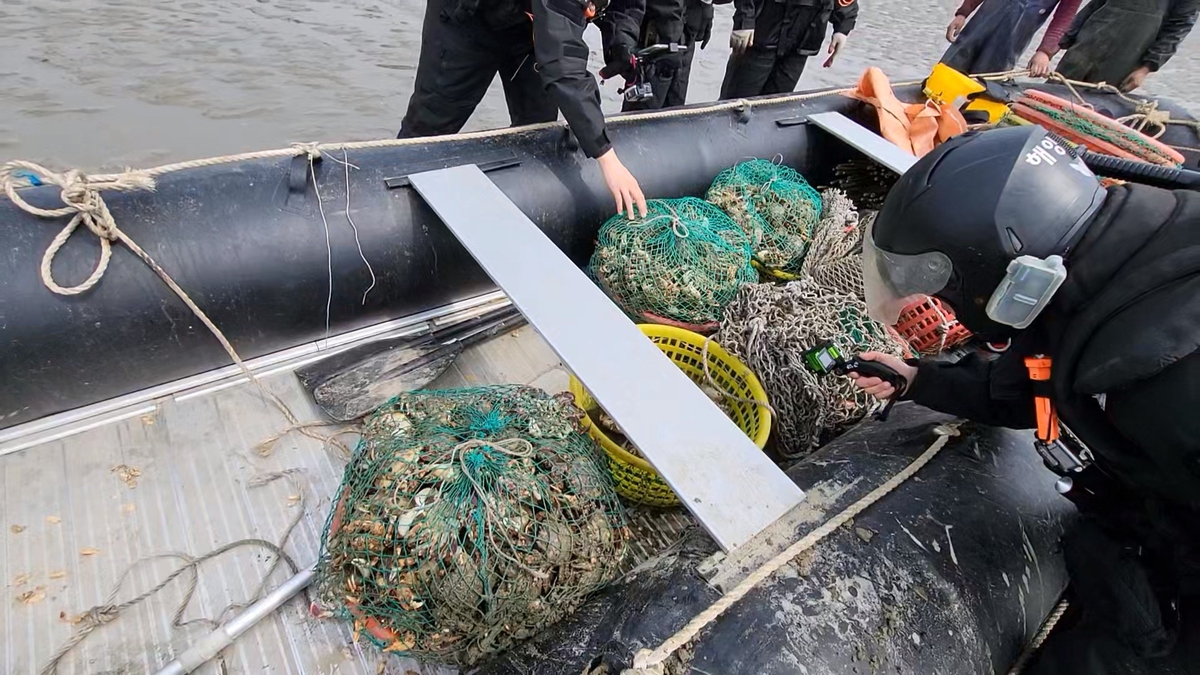 단속 당시 보트에는 범게 80㎏가량이 실려 있었다. 해경은 중국 선적 선박에서 승선원들이 따로 고무보트를 타고 나와 불법 조업한 것으로 보고 선원 6명을 인천해경서 전용부두로 압송해 경위를 조사하고 있다.