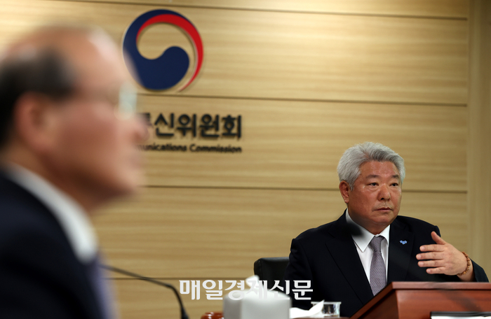 김홍일 방송통신위원장이 28일 오전 경기 과천시 정부종합청사에서 열린 방통위 전체회의에서 모두발언을 마친 뒤 관계자에게 비공개 전환을 지시하고 있다. 2024.6.28 [김호영기자]