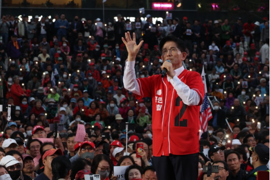 서울역에서 유세하는 김문수 후보. (출처=연합뉴스) 김문수 국민의힘 대선 후보가 신변 보호를 위해 방탄복을 입고 유세장에 방탄 유리막을 설치한 이재명 더불어민주당 대선 후보를 겨냥해 “총 맞을 일 있으면 나는 맞겠다”고 말했다.