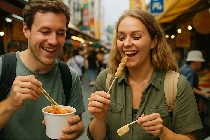 서구권 외래 관광객이 한국을 관광하는 모습을 표현한 그림 /그림=챗GPT 여기에 올해 트립어드바이저가 자체적으로 내놓은 투명성 보고서에 따르면 이용자의 50.0%는 유럽권,22.9%는 미국권,16.6%는 아시아권 거주자인 것으로 드러났다.