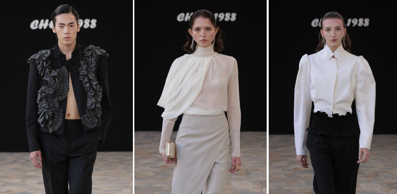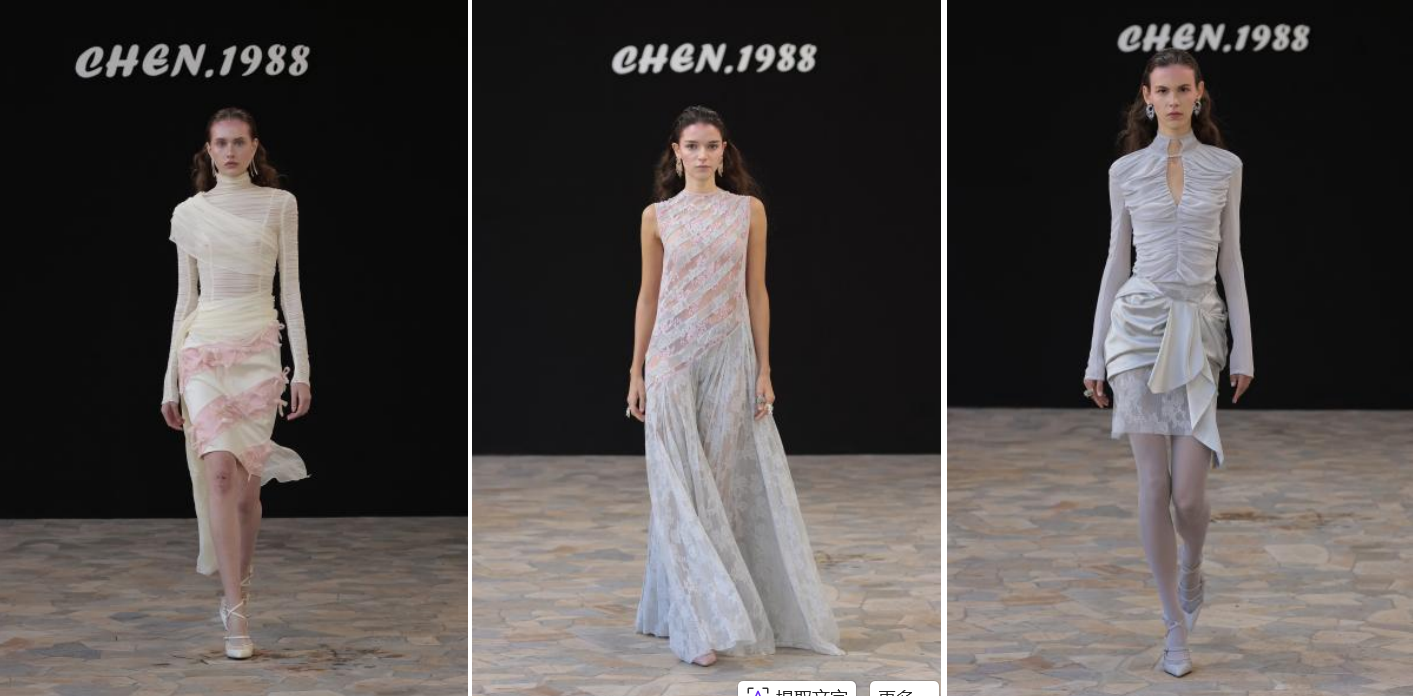 종탑의 종소리가 어두운 옥상을 휩쓸며, 최근 "황금관상"을 수상한 천룽(Chen Long)의 "가을 이상(Autumn Ideal)" 쇼케이스가 낭만적으로 시작되었습니다. 복도 바닥 타일은 황혼과 무대 조명을 반사하며 모델들의 스커트에 드리워진 핑크빛 그라데이션과 어우러졌습니다. 수작업으로 장식된 비즈 리본은 걸음을 옮길 때마다 부드럽게 떨렸고, 레이스와 레이저 커팅 디테일로 만들어진 입체적인 질감은 기둥 사이에서 빛과 그림자를 유희했습니다. 어깨 디자인의 날카로운 실루엣은 멀리 보이는 시계탑의 고전적인 선과 조화를 이루었습니다. 영어: '가을'을 시로 삼은 Chen Long은 단순한 표현을 넘어 부드러운 분홍색과 짙은 회색의 충돌, 섬세한 거즈와 날카로운 컷아웃의 상호 작용을 사용하여 걷기의 리듬을 통해 여성의 고요하면서도 풍부한 내면 세계를 윤곽을 그렸습니다.얇은 네크라인의 디테일은 전통적인 우아함의 경계를 허물었고, 퍼프 스커트는 현대적인 실루엣과 합쳐져 각 걸음마다 편안하고 자신감 넘치는 동양적 미적 태도를 전달하며, 편안함과 생동감 넘치는 디자인 긴장감을 모두 발산하여 현대 중국 디자인의 독특한 매력을 보여주었습니다.