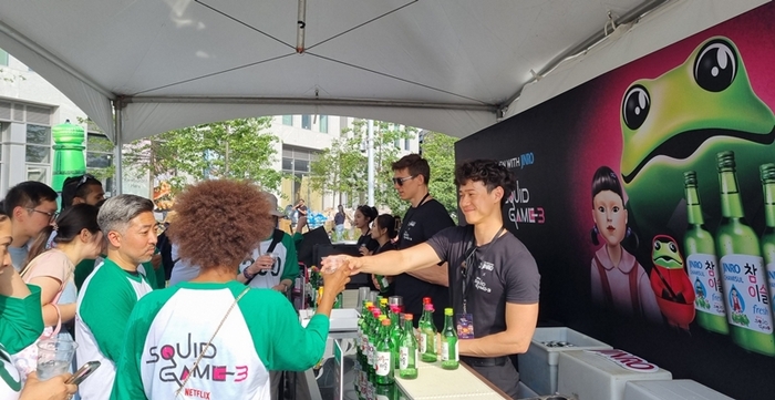 오겜도 진로도 ‘예술’…하이트진로, ‘오징어게임’ 시즌3 뉴욕 팬 이벤트서 부스 운영