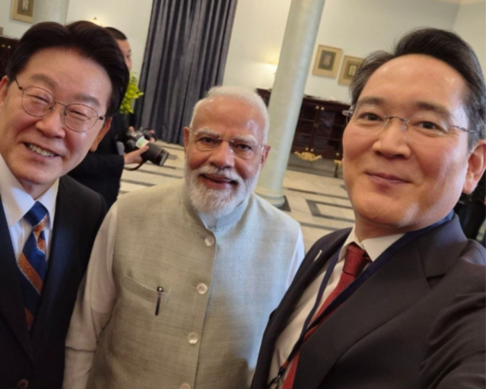 (왼쪽부터) 이재명 대통령,나렌드라 모디 인도 총리,이재용 삼성전자 회장이 지난 20일 인도 노이다 공장에서 생산한 갤럭시 Z 플립7 모델로 기념사진을 촬영하고 있다. [삼성전자 뉴스룸 인스타그램] 네이버와 TCS는 인공지능(AI),클라우드,기업소비자거래(B2C) 등 역량을 결합해 인도 기업들의 인공지능 전환(AX)과 디지털 전환(DX)을 지원하는 등 신규 사업을 공동으로 발굴할 계획이다. 네이버의 플랫폼 기술력과 TCS가 보유한 글로벌 서비스 생태계 및 데이터 자산을 결합해 인도 시장에서 수익을 창출할 수 있을 것이라는 기대가 나온다.