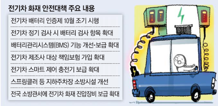 정부는 우선 국내에서 판매하는 전기차의 배터리 용량은 물론 셀 제조사와 형태,주요 원료 같은 정보를 공개한다. 내년 2월 시행 예정이던 ‘전기차 배터리 인증제’는 다음달부터 시범 사업으로 시작한다. 이는 전기차를 제작할 때 정부가 배터리 안전성을 사전에 인증하는 제도다.
