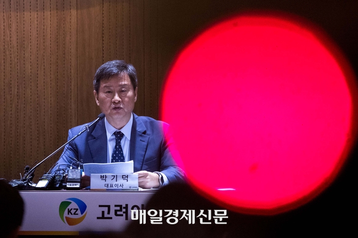 박기덕 고려아연 사장이 22일 서울 중구 코리아나호텔에서 긴급 기자회견을 하고 있다.2024.10.22 [김호영기자]