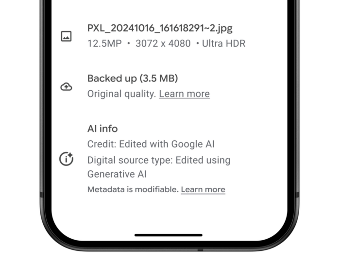 사실 이 기술은 새로운 것은 아니다. 존 피셔 구글 포토 엔지니어링 디렉터는 구글 공식 블로그를 통해 “매직 에디터,매직 지우개,줌 인핸스와 같은 도구로 편집된 사진엔 이미 국제언론통신협의회(IPTC)의 기술 표준에 기반한 메타데이터가 포함돼있어 생성형 AI를 사용해 편집됐음을 확인할 수 있다”며 “이제 한 걸음 더 나아가 사진 앱의 파일 이름,위치와 백업 상태와 같은 정보와 함께 이 정보(AI를 활용한 편집 여부)를 볼 수 있도록 한 것”이라고 설명했다.