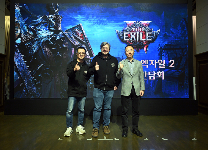 김상구 카카오게임즈 본부장(왼쪽부터),조나단 로저스 그라인딩 기어 게임즈 개발 총괄,한상우 카카오게임즈 대표가 29일 서울 성동구 보테가마지오에서 열린 ‘패스 오브 엑자일 2’ 간담회에서 기념 촬영을 하고 있다. [사진 = 카카오게임즈] 지난 2019년부터 5년간 ‘패스 오브 엑자일’을 서비스해 온 카카오게임즈는 전작에 이어 POE 2의 국내 서비스도 맡게 됐다. 국내 PC와 콘솔 서비스를 담당하며,얼리 액세스 기간에는 PC방에서 무료 플레이를 지원할 예정이다.