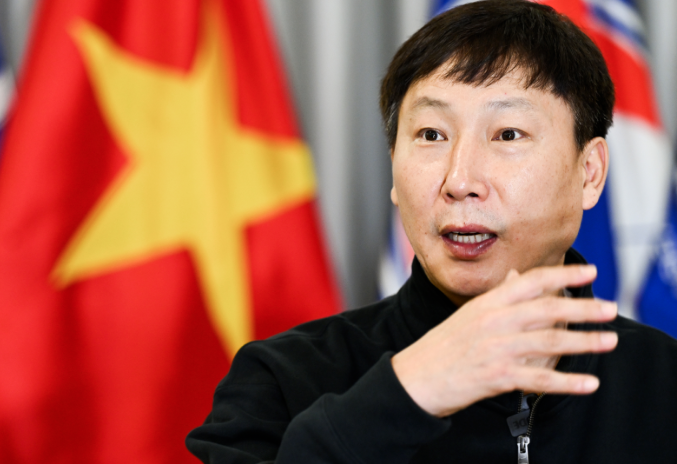 베트남 우승 이후 현지 매체와 인터뷰하는 김상식 감독. <VN익스프레스>