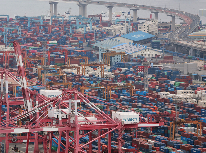 2일 오후 국내 최대 무역항인 부산항 감만·신감만 부두에서 컨테이너 선적 및 하역작업이 진행되고 있다. 2025.3.2 [사진 = 연합뉴스] 지난달 수출이 한 달 만에 플러스 전환했지만 주력 수출 품목인 반도체 부진으로 올해 수출 전망에 먹구름이 꼈다는 우려가 나온다. 도널드 트럼프 미국 대통령이 예고한 반도체·자동차 등에 대한 관세가 현실화한다면 수출 불확실성이 더욱 커질 전망이다.