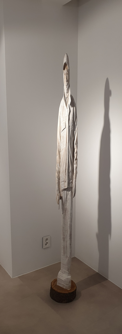석양 아래 길게 늘어뜨린 인간의 그림자에 두 동공을 그려준 듯한 묘한 작품들이다. 다른 작가들이 빛을 향했다면 이환권 작가는 빛의 가장자리를 다루고 있다. 전시된 작품들 중에는 그가 폭설과 강풍으로 쓰러지고 벌목된 후 방치된 나무들을 활용한 조각상도 여럿이다. 시간이 흐르며 갈라진 사람 두상의 ‘틈’마저도 처음부터 이환권 작품의 ‘예정된 일부’였던 것만 같다.