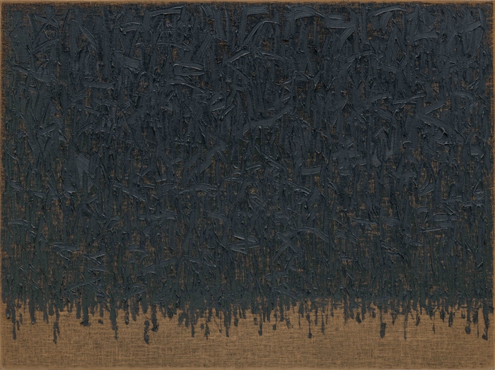 작가가 세계적으로 주목받게 된 것은 1974년부터 시작한 ‘접합’ 시리즈를 통해서다. 그는 마대 뒷면에 두꺼운 유화 물감을 바른 뒤,물감이 거친 천의 짜임 사이를 뚫고 앞면으로 밀려 나올 때까지 압력을 가하는 ‘배압법’을 고안했다. 이 기법으로 탄생한 작품들은 서예나 동양화를 연상시키는 한국적 추상의 미감을 담아낸다.