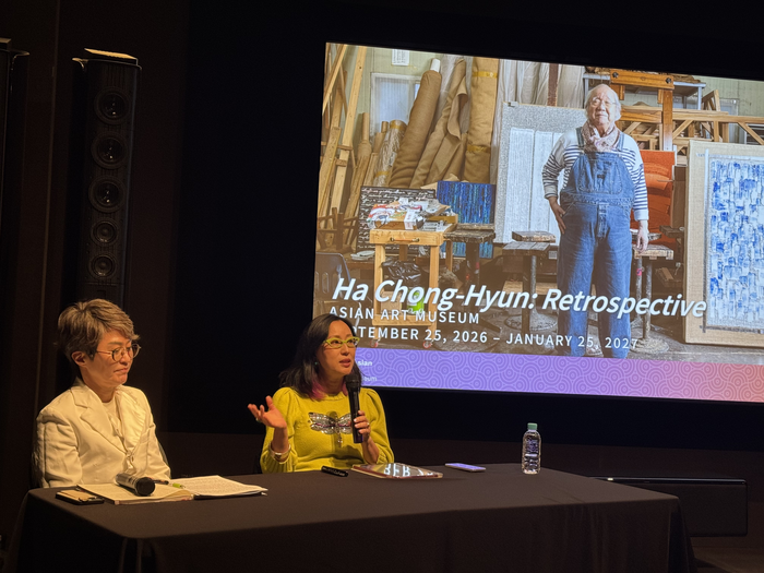 이소영 아시아미술관(AAM) 관장(오른쪽)과 김선정 아트선재센터 예술감독이 21일 서울 종로구 국제갤러리에서 열린 ‘AAM 하종현 회고전’ 간담회에서 참석한 모습. <정유정 기자> 한편 하종현의 회고전이 열리는 가을,샌프란시스코 현대미술관(SFMOMA)에서 방탄소년단(BTS) 리더 RM이 기획에 참여하는 특별전이 예정돼 있어 한국 미술에 관한 관심이 더욱 높아질 전망이다. SFMOMA는 오는 10월 3일부터 내년 2월 7일까지 ‘RM X SFMOMA’를 개최하며,RM의 소장품과 SFMOMA 소장 작품을 한자리에 모아 한국 근현대미술과 세계 현대미술 간의 대화를 시도한다. 올해는 샌프란시스코와 서울이 자매도시 결연을 맺은 지 50주년이 되는 해이기도 하다. 이 관장은 “두 전시가 맞물리며 올해는 샌프란시스코에서 ‘빅 코리아 모먼트’가 펼쳐지는 한 해가 될 것”이라고 기대감을 드러냈다.