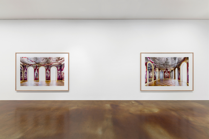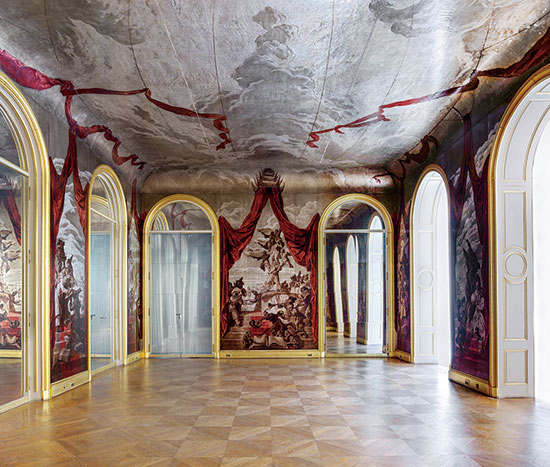 이미지 제공: 국제갤러리 켜켜이 쌓인 무수한 시간들이 쌓인 현장을 카메라 앵글에 담아냄으로써 공간의 변천사를 시각적으로 명료하게 보여준 이 작품은 박물관 1층 복도 끝 공간을 가득 메운 드라마틱하고도 장식적인 벽화 작품들과 극명한 대비를 이룬다. 벤델 대저택(Hôtel de Wendel)의 무도회장을 위해 제작된 1층의 벽화 작업은,1989년 박물관에 재설치된 이후 최근 복원 과정을 거쳤는데 특히 창문과 거울 테두리의 금색 프레임,공간을 압도하는 대칭 구도나 역동적 장식 등이 공간에 새로운 질서를 부여한다.