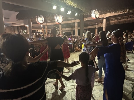 공연단에게 전통 춤을 배워보고 함께 기념 사진을 남길 수 있다. /사진= 강예신 여행+ 기자 공연이 끝나면 여성 관람객과 남성 관람객들을 한 번씩 무대로 나오게 해 공연단들이 직접 전통 폴리네시안 춤을 가르쳐준다. 현지인에게 직접 전통춤을 배워볼 수 있는 기회다. 약간의 부끄러움은 잠시일 뿐,다같이 나와 간단한 동작들을 배우다보면 자신도 모르게 열중하게 된다.