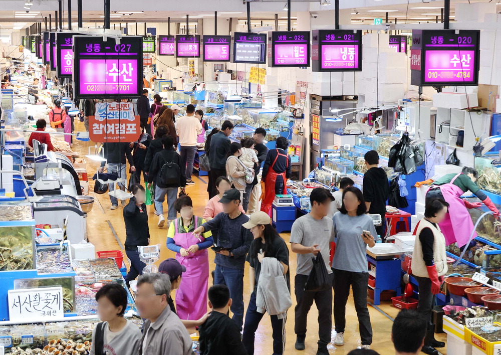 3일 '2024 수산대축제'가 열린 서울 동작구 노량진수산시장이 시민들로 북적이고 있다. 이번 축제는 수산물 할인과 시식 행사로 수산물 소비를 활성화하기 위해 열렸다. 한주형 기자