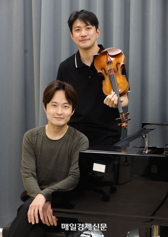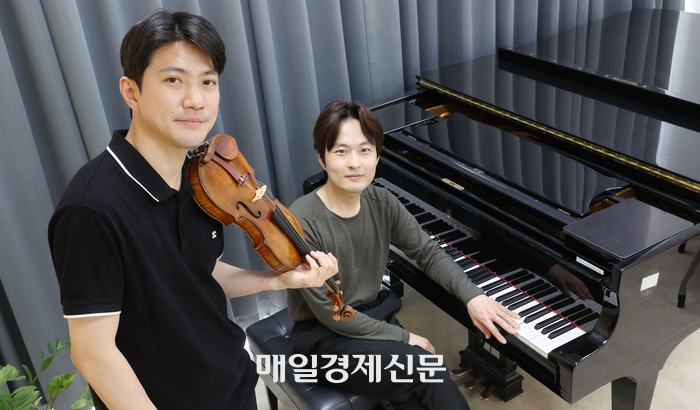 ‘20년 절친’ 사이인 바이올리니스트 김영욱과 피아니스트 김다솔이 다음달 1일 서울 예술의전당 IBK챔버홀을 시작으로 3일 부산,11일 통영에서 듀오 리사이틀 ‘시간의 조각’을 연다. 이승환 기자 이번 공연 선곡에도 이견은 없었다. 바로크 시대에서 영감받은 스트라빈스키의 신고전주의부터 낭만주의 절정기인 슈만의 후기작,이어 20세기 전쟁의 상흔이 담긴 풀랑과 프로코피예프까지 다양한 시대와 주제를 아우르는 네 곡을 골랐다. 이 중 슈만 바이올린 소나타 2번이 가장 먼저 선곡됐다. 김영욱은 “열 살 무렵,아주 어렸을 때부터 들어온 곡인데 막상 커서 연주하려니 잘 해낼 수 없을 것 같아 엄두가 안 났다”며 “미루고 미루다 드디어 도전한다”고 했다. 김다솔은 “논리를 뒤로 하고 감성을 부끄럼 없이 표현하는 음악”이라며 “요즘 말로 ‘돌직구’나 ‘급발진’하는,연주자도 청자도 그렇게 느낄 곡”이라고 소개했다.