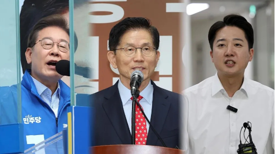 이재명,김문수,이준석 후보. (출처=연합뉴스) [속보] 이재명 49.2%,김문수 36.8%,이준석 10.3%…공표 금지 전 마지막 조사