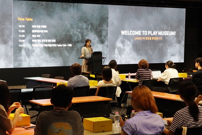 UNIDEV는 지난 2023년 결성한 연합 단체로,자체 게임 전시회를 여는 등 다양한 활동을 진행하는 대학생 개발자 커뮤니티다. 이번 행사에는 UNIDEV 소속 대학생 30여 명이 참석해 사옥 투어와 NHN 게임 소개,직무별 테이블 토크 등 다양한 프로그램에 참여했다.