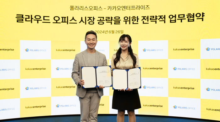 카카오엔터프라이즈가 지난 26일 오피스 소프트웨어(SW) 기업 폴라리스오피스와 업무협약(MOU)을 체결했다고 27일 밝혔다.