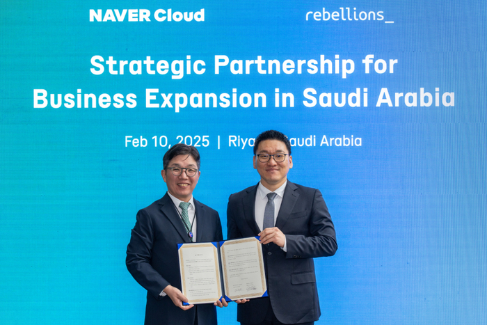 김유원 네이버클라우드 대표,박성현 리벨리온 대표(왼쪽부터)가 사우디아라비아 소버린 AI 구축을 위한 업무협약 체결식에서 기념 촬영을 하고 있다. [사진 = 네이버 클라우드] 네이버클라우드는 사우디아라비아 리야드에서 열린‘LEAP 2025’ 행사에서 인공지능(AI) 반도체 스타트업 리벨리온과 ‘사우디아라비아 소버린 AI 구축을 위한 사업 협력’을 골자로 한 업무협약(MOU)을 체결했다고 13일 밝혔다.