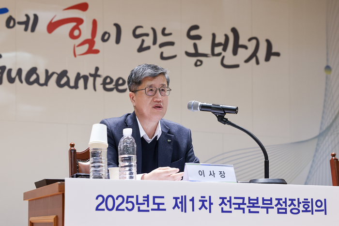최원목 신용보증기금 이사장이 14일 대구 본점에서 열린 2025년도 제1차 전국본부점장회의에서 발언하고 있다. <사진=신용보증기금> 신용보증기금이 올해 총75조6000억원 규모의 보증을 공급한다. 신보는 기업이 부담하는 각종 채무를 보증함으로써 성장유망한 기업을 지원하고 있다.