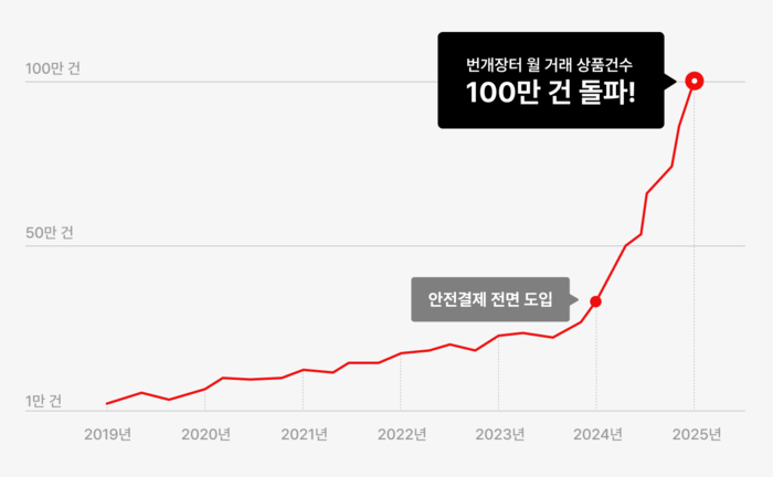 번개장터는 지난해 8월 국내 중고 거래 플랫폼 최초로 에스크로 기반 안전결제 시스템을 전면화했다. 안전결제 전면 시행 두 달만에 플랫폼내 사기 건수는 약 80% 감소했다.