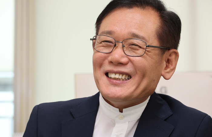 지난 10일 김한석 테크밸리 대표가 경기 경남시 테크밸리 사무실에서 매일경제와 인터뷰 도중 환하게 웃고 있다. [한주형 기자] “테크밸리는 국가가 키운 벤처기업이라고 할 수 있죠.”