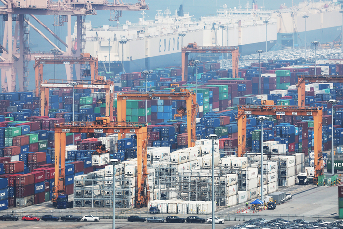 경기도 평택항에 컨테이너가 쌓여 있는 모습. [사진 = 연합뉴스] 미국의 상호관세 부과가 8월 1일로 유예된 가운데,7월 수출이 반도체·자동차·선박 등 주력 품목 호조에 힘입어 증가 흐름을 유지했다.