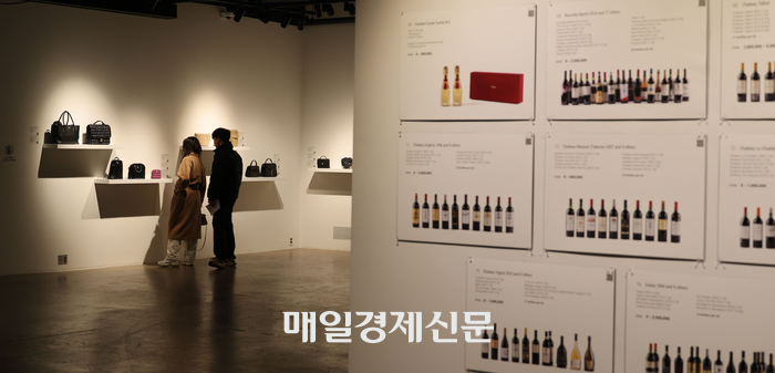 6일 서울옥션 강남센터에서 국세청 경매 프리뷰 전시가 열리고 있다. [이승환기자] 지난 3월 6일 서울옥션 강남센터 지하 1층. 이른바 ‘국세청판 블랙프라이데이(블프)’가 열렸다. 국세청은 거액의 세금을 내지 않고 버티던 고액체납자들의 가방·시계 등 명품과 그림 위주의 예술품 76점을 이곳에 전시했다. ‘블프’는 11월 넷째주 목요일인 추수감사절 다음 날로,미국에서 최대 규모의 쇼핑이 이날 이뤄진다. 쇼핑 주체가 국가이다 보니 명품 공매(법원일 경우 경매)라는 이름이 붙게 됐다.