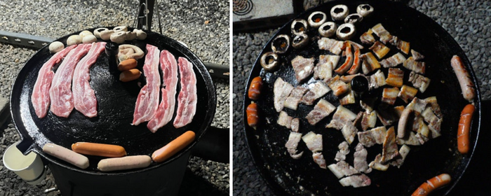 촌캉스 인증샷 / 사진=정세윤 여행+ 기자 야외에서 즐기는 삼겹살도 빼놓을 수 없다. 숙소 야외 테라스에는 삼겹살을 구워 먹을 수 있는 모든 재료를 구비해 뒀다. 숙소를 예약할 때 미리 신청하면 솥뚜껑도 무료로 사용이 가능하다. 시골이라 벌레가 많아 삼겹살을 먹는데 신경 쓰이지 않을까 걱정했지만 모기향과 벌레 퇴치 스프레이도 부족함 없이 준비하고 있어 괜찮았다. 삼겹살을 다 먹고 난 뒤,아직 다 꺼지지 않은 불을 바라보며 불멍도 즐길 수 있다.