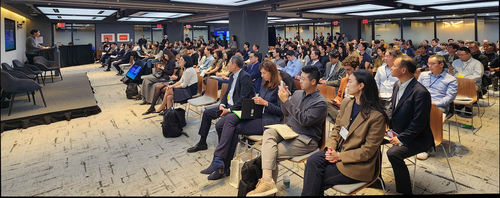 지난 10월 미국 뉴욕 뱅크오브아메리카파빌리언에서 UKF 주최로 열린 ‘2024 NYC 스타트업 서밋’에서 참가자들이 개막사를 경청하고 있다.