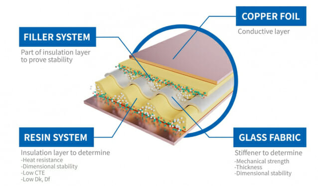 이번 전시회에서 두산은 인공지능(AI) 가속기용 CCL과 데이터센터(라우터,스위치,서버)에 적용되는 고속 통신 네트워크용 CCL을 소개한다. CCL은 동박과 레진 및 보강기재 등이 결합된 절연층으로 구성되며,PCB에 사용되는 핵심 소재다.