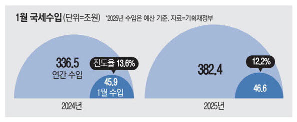 [그래픽 뉴스] 1월 국세수입 46.6조…올해도 세수 펑크?