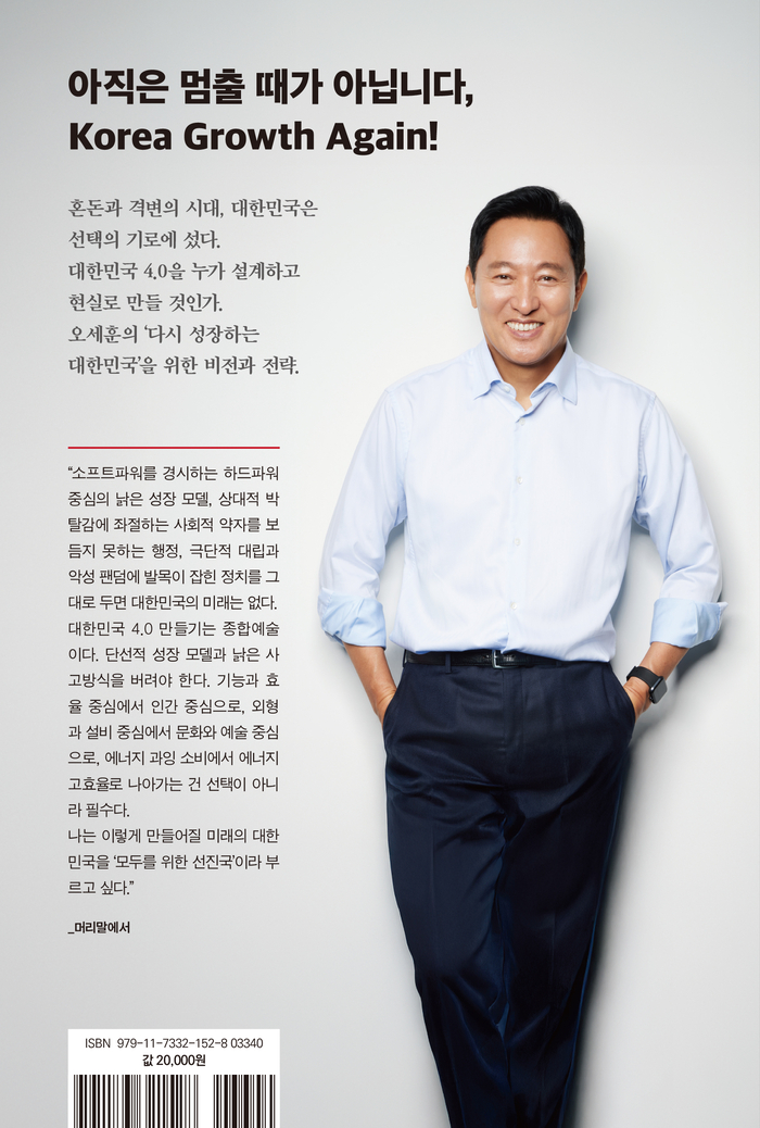 여권 대권주자인 오세훈 서울시장이 신간 ‘다시 성장이다’(김영사 펴냄)를 통해 더불어민주당을 강하게 비판했다. 이 책은 14일 오전 10시부터 온라인과 주요 서점에서 예약판매를 시작하고,이달 25일 정식 출간된다. 한동안 베스트셀러에 지각변동을 일으킨 한동훈 전 국민의힘 대표 책 ‘국민이 먼저입니다’(메디치미디어)에 이어 대권주자들의 책이 연이어 서점가를 강타하고 있다.