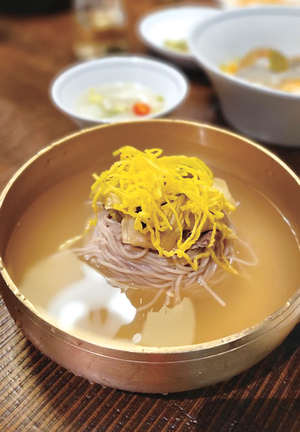마니아층을 거느린 대표 음식이자 호불호도 확실한 평양냉면이지만 ‘봉피양’의 냉면은 평양냉면파,함흥냉면파 모든 이의 입맛을 대통합한 맛이다. 육향이 진하지만,메밀의 풍미가 진해 담백하고 깔끔한 국물 맛은 속을 뻥 뚫어주는 쾌감이 있다. 졸깃한 면에 고명으로 올라간 새콤한 얼갈이를 돌돌 말아먹는 게 킥. 여기에 물론 봉피양의 시그니처 메뉴인 돼지갈비를 지나칠 수 없다. 벽제갈비 특제 양념과 숯 향이 만난 돼지목심 본갈비 한 점과 먹는 냉면의 풍미는 늘 아는 맛이지만 고개가 끄덕여진다.[글과 사진 최유진][본 기사는 매일경제 Citylife 제974호(25.04.08) 기사입니다]