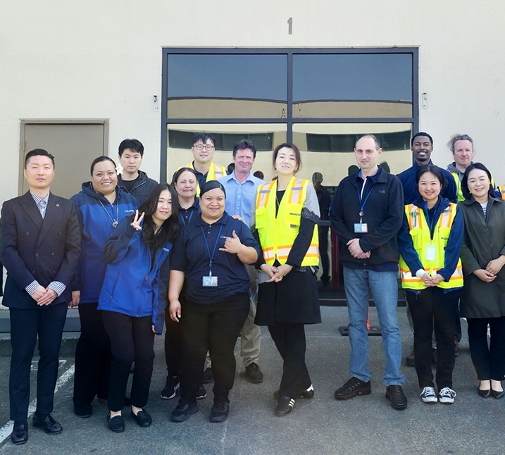 美물류센터 점검나선 조현민 조현민 사장(앞줄 오른쪽 넷째)을 비롯한 한진의 경영진이 일제히 미국·멕시코 등 미주 지역을 찾아 물류사업 현장 경영에 나섰다. 사진은 한진 경영진이 미주지점 시애틀 화물터미널을 방문한 모습. 한진