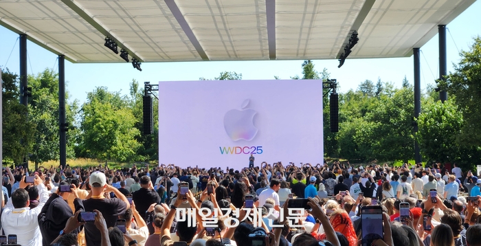 팀 쿡 애플 CEO가 9일(현지시간) 미국 캘리포니아주 쿠퍼티노에서 열린 WWDC2025 개막을 앞두고 참석자들에게 인사를 하고 있다. <사진=이덕주 기자> 애플이 연례개발자행사인 WWDC에서 새로운 인터페이스인 ‘리퀴드 글래스(Liquid Glass)’를 공개했다. 2013년 이후 첫 대규모 업데이트다.