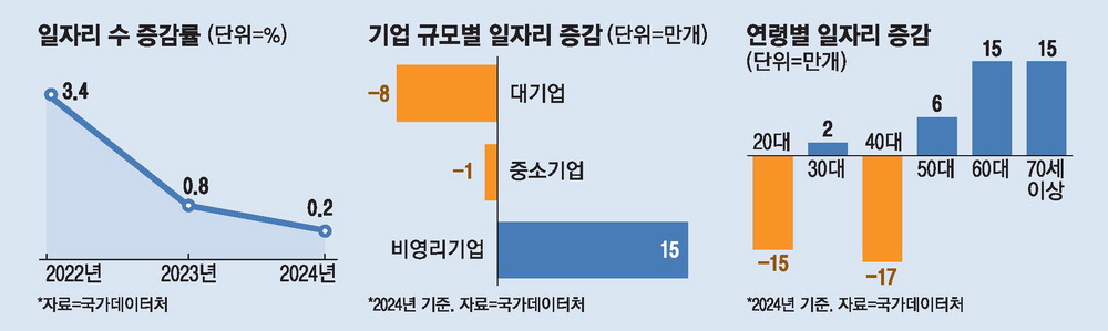 11일 국가데이터처가 발표한 '2024년 일자리행정통계'에 따르면,지난해 일자리는 총 2671만개로 전년에 비해 0.2%인 6만개 증가하는 데 머물렀다. 2016년 통계 작성 이래 가장 낮은 수준이다.